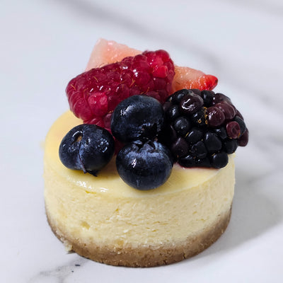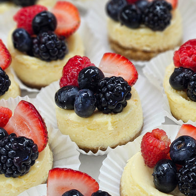 Docena de Mini Chesecakes decorados con frutos rojos. Perfecto para una mesa de postres o simplemente para el antojo.